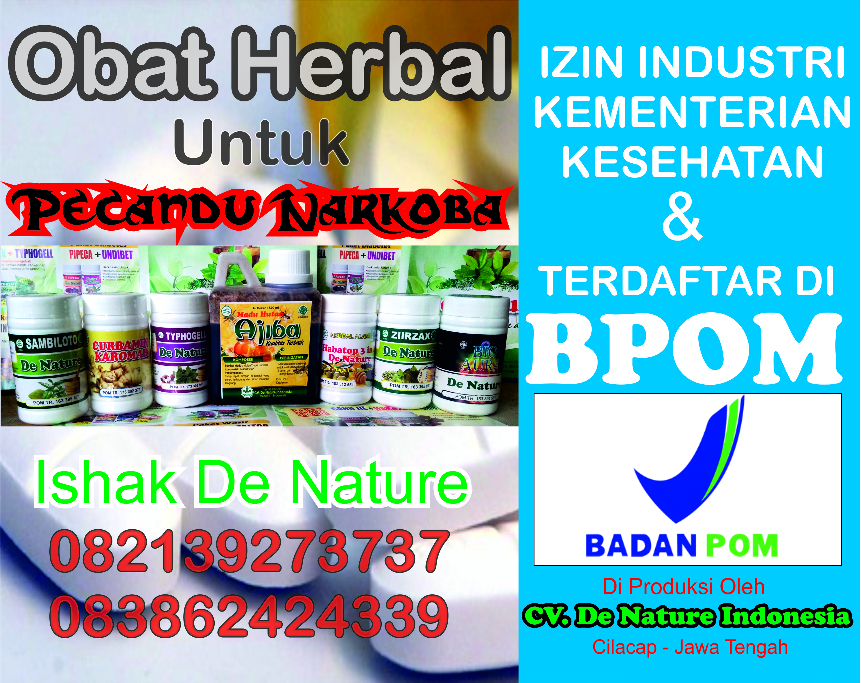 Kini De Nature Indonesia mempunyai obat herbal untuk para pecandu narkoba.